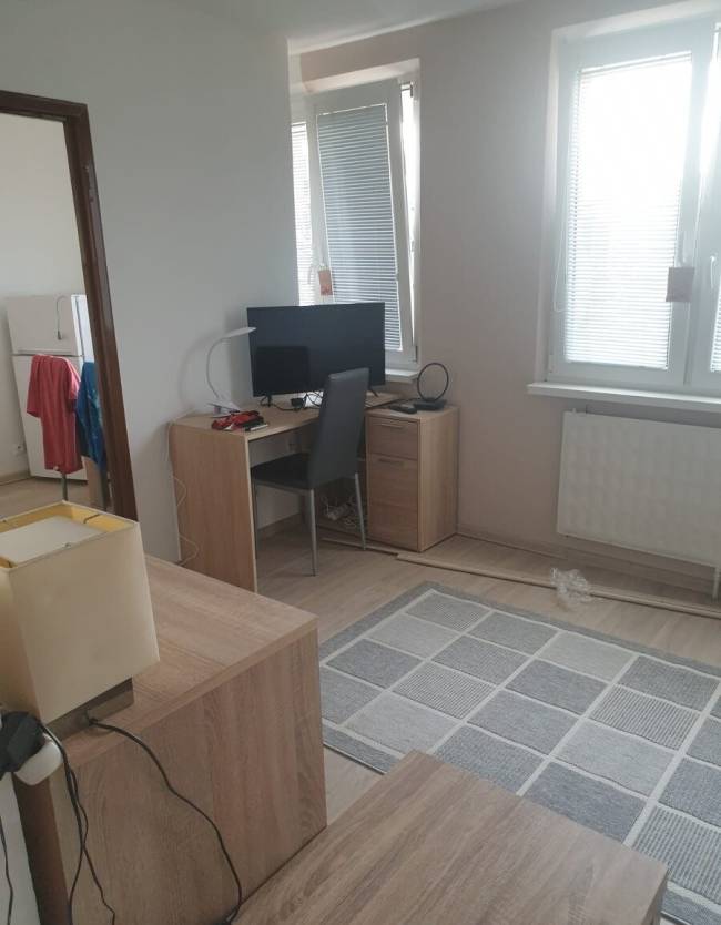 Ponúkam Vám na prenájom (dlhodobo) 1-izbový byt (typ bytu bauring) v Banskej Bystrici, v mestskej časti Fončorda na Tulskej ul. č. 105, nachádzajúci sa vo vnútornej sekcii bytového domu, na ideálnom stredovom podlaží v deväť poschodovom zateplenom bytovom dome s novým výťahom, orientovaný na Západ. Nehnuteľnosť je po čiastočnej rekonštrukcii, je pekný, čistý s dostatkom denného svetla. Má plastové okná so žalúziami, vymenené podlahy, svetlé -bledé farby na stenách aj stropoch, kuchynská linka je nová s elektrickou 2 platňou, kúpeľňa je murovaná s vaňou a je spoločná s WC. Na chodbe je priestranná vkusná šatníková skriňa. Denná izba (obývačka) je zaujímavo prepojená s výklenkom na nočnú časť. Je zariadený v základe funkčne. Ideálne pre 1-2- možno až 3- študentov.