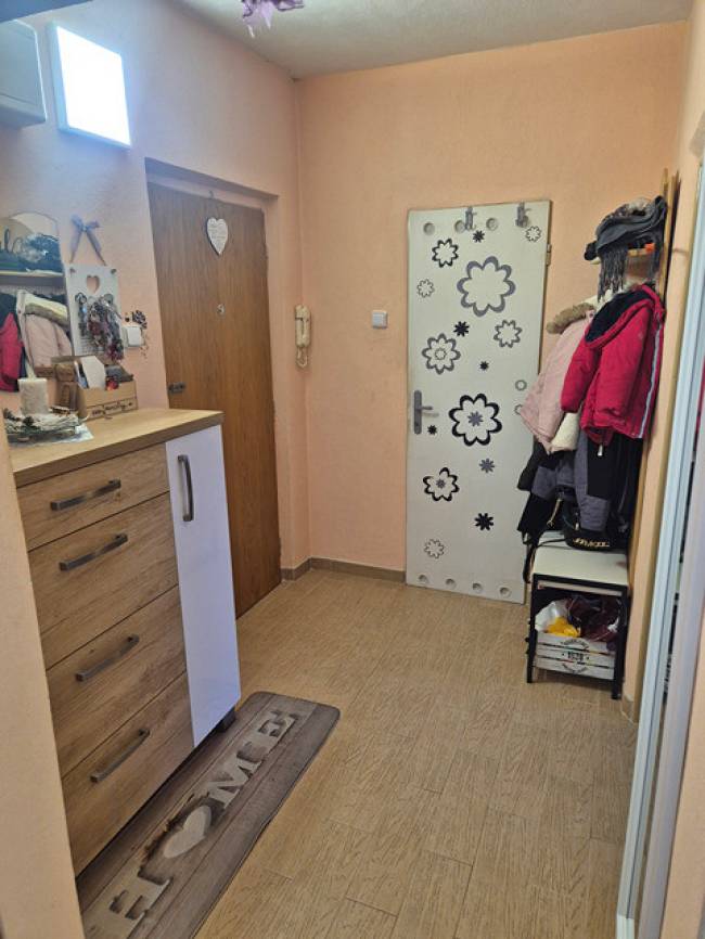 Veľkou výhodou bytu je aj praktická špajza priamo v byte, ktorá poskytuje dostatok úložného priestoru.