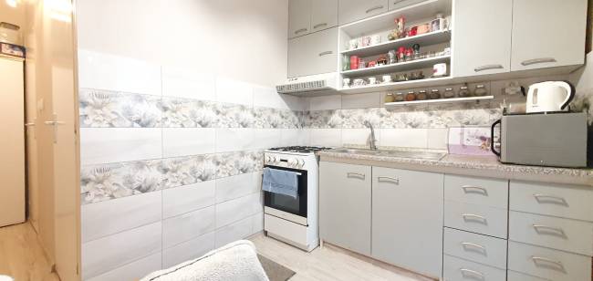 Byt pozostáva zo vstupnej chodby, priestrannej izby využívanej ako obývacia časť aj spálňa, kuchyne s výstupom na loggiu, kúpeľne so sprchovým kútom a samostatného WC. V byte sa nachádza dostatok úložného priestoru, je svetlý, prakticky riešený a pôsobí veľmi útulne.