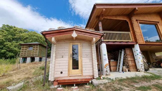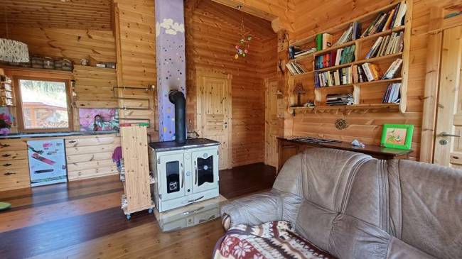 Ponúkame na predaj jedinečný celoročne obývateľný fínsky drevený zrub so saunou, pivnicou, skleníkom, jazierkami, domčekom na náradie, pecou na chlieb, záhradou na pestovanie plodín a ovocnými stromami. Nehnuteľnosť sa nachádza na slnečnom terasovitom pozemku o výmere 17 444 m², iba 6 km od mesta Krupina. Prístup je cez oblasť Červená hora, posledné 2 km vedú lesnou cestou – zaručené ticho, súkromie a nočná obloha posiata hviezdami.