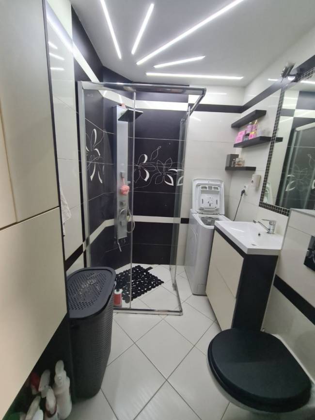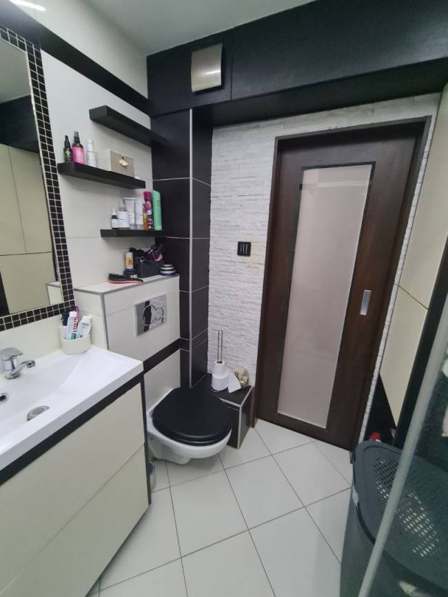 Nehnuteľnosť je po kompletnej, vkusnej rekonštrukcii: plastové okná so žalúziami a sieťkami proti hmyzu, drevené masívne podlahy jednotné v celom byte, stierky biele aj stropy, nové interiérové drevené posuvné dvere do kuchyne, obývačky a do kúpeľne, vstavaná skriňa na mieru v chodbe, kuchynská linka je biela do tvaru L so zabudovanými spotrebičmi - umývačka riadu Siemens, indukčná varná doska Siemens, el. rúra Siemens, digestor, granitový drez, samostatná chladnička s mrazničkou, mikrovlnka, kuchynský stôl s taburetkou. Kúpeľňa je murovaná. zrekonštruovaná, so sprchovým kútom, WC Geberit, práčka ostáva. Obývačka (denná miestnosť) je oddelená od nočnej časti. Nové sú aj rozvody elektriky, vody, odpadov. Stúpacie rozvody v bytovom dome boli menené za nové.