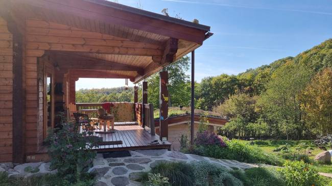 Ponúkame na predaj jedinečný celoročne obývateľný fínsky drevený zrub so saunou, pivnicou, skleníkom, jazierkami, domčekom na náradie, pecou na chlieb, záhradou na pestovanie plodín a ovocnými stromami. Nehnuteľnosť sa nachádza na slnečnom terasovitom pozemku o výmere 17 444 m², iba 6 km od mesta Krupina. Prístup je cez oblasť Červená hora, posledné 2 km vedú lesnou cestou – zaručené ticho, súkromie a nočná obloha posiata hviezdami.