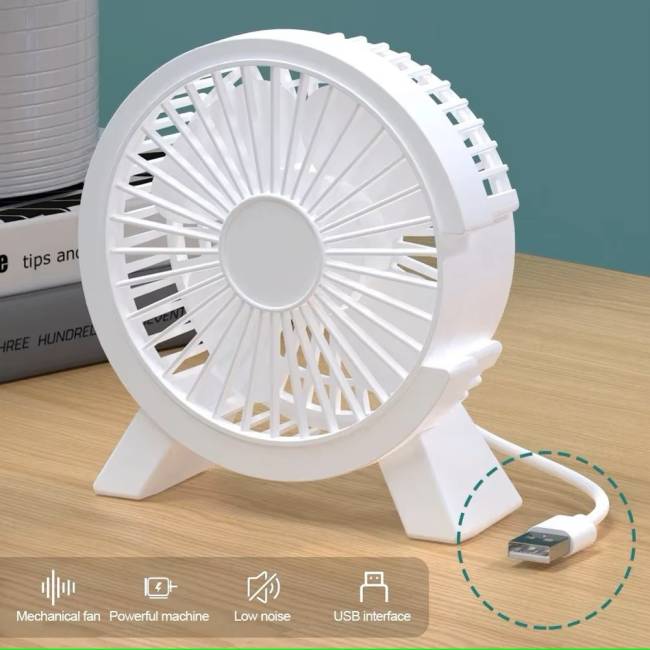 Kompaktný a prenosný stolný ventilátor s USB vstupom, kompatibilný s počítačmi, notebookmi, prenosnými nabíjačkami a ďalšími zariadeniami s výstupom USB.