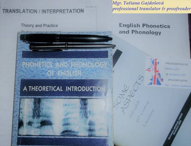 Preklady a opravy textov zo všetkých odborov a oblastí - bez obmedzení, pokiaľ ide o zameranie textu. VŠ vzdelanie v odbore angl. jazyk + úspešná prax v oblasti prekladov a korektúr textov od r. 2010 - napr. korektúry tvorby učiteľov angličtiny v rámci celej SR pre Minist. školstva a CVTI SR, od novembra 2016 - preklady dokumentov pre austrálske úrady a súdy, atď.. Okrem prekladov zo slovenčiny do angličtiny a naopak a korektúr textov v AJ ponúkam tiež preklady z češtiny do angličtiny! Môj level znalosti angličtiny je C2 podľa väčšiny testov, niekedy C1.