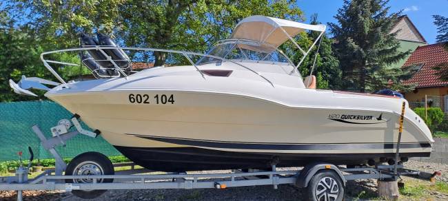 Čistá a zachovalá kajutová lod Quicksilver 620 Cruiser + motor Mercury 115hp EFI pr. 2020, najetých iba 180hod. K lodi je komplet BIMINI s bočnicami. Ide o model s perfektným vyvážením priestoru, hmotnosti a ceny. Loď prevážam na vleku 1800kg. Kajuta pojme 2 dospelých + dieťa, prípadne je možné použiť ďalšie rozkladacie lôžko na palube. Odvetranie kajuty uzatvárateľným oknom, osvetlenie, kvalitná hudba so zosilňovačom, USB zásuvky, guľatá 12V, úložné priestory. Pozičné osvetlenie, komplet bimini, prevozná plachta, odnímateľný stolík a sedačky, rozkladacie opaľovacie lôžko, pod palubou je veľký úložný priestor prístupný aj z kajuty, priestor pre chladničku. Odnímateľná kuchynka s varičom. Palubná sprcha, nádrž 67 litrov na vodu, nádrž na palivo 135litrov, automatické čerpadlo, 2x batéria, hydraulické riadenie, el. kotevný naviják na diaľkové ovládanie s reťazom, nerez zábradlie, nerez rebrík, keramická splachovacia toaleta – ktorá sa nepoužívala, miesto pre chemickú toaletu, GPS + echo, húkačka, celá paluba s príjemným EVA teakom, čistá a zachovalá loď na okamžité užívanie bez ďalších investícií. Celková dĺžka lode bez motora je 665 cm, registrované na SPS, vr. poistenia. Cena za loď s motorom 115hp je 34 000, - EUR. Teraz po zľave cena 28 000,00 EUR